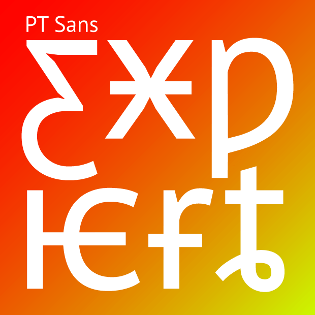 Выпущенные в 2009–2011 году гарнитуры PT Sans, PT Serif и PT Mono оказались настолько востребованы, что было решено сформировать несколько экспертных начертаний и, расширить их по составу знаков. Первое в этом ряду — PT Sans Expert — сформированное на основе регулярного начертания PT Sans версии 2.005 и дополненное по составу знаков. В первой версии PT Sans Expert заполнены следующие страницы Юникода: