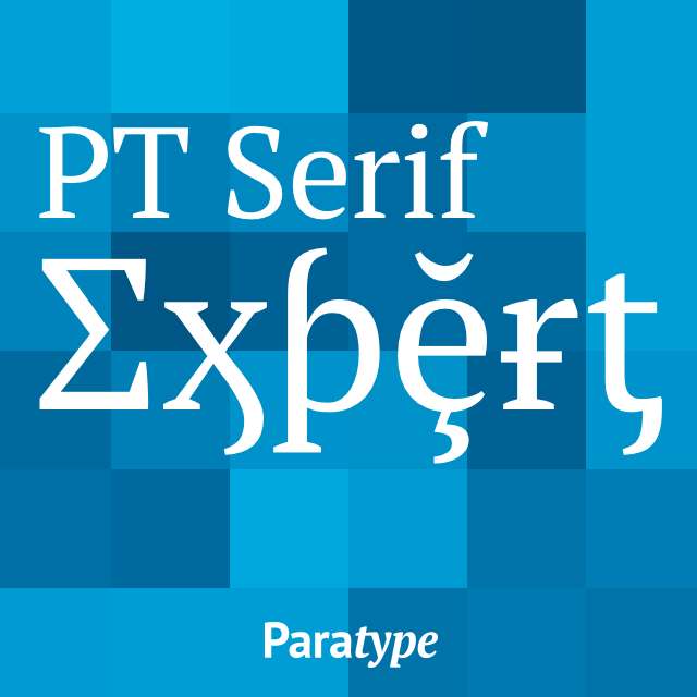 PT Serif Expert второй в ряду экспертных шрифтов, предназначенных не только для обычного использования, но и для изучения. По аналогии с актуальной версией PT Sans Expert, шрифт расширен по составу знаков до полных латинских диапазонов (Latin Extended-A, Extended-B, Extended Additional), базового кириллического диапазона и частично греческого (Greek Monotonic).